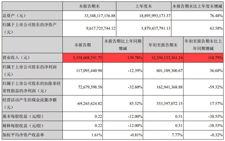 10月29日晚,木林森發(fā)布《2018年第三季度報告》,公布了2018年年初至報告期末,營業(yè)收入達(dá)到123.5億元人民幣。