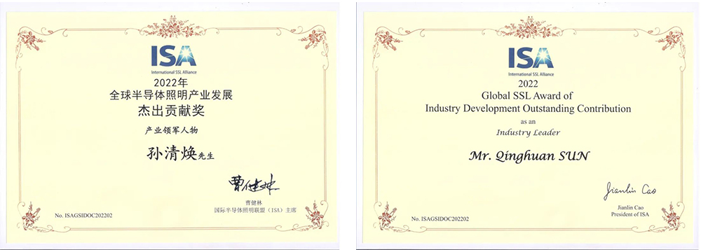 國(guó)際半導(dǎo)體照明聯(lián)盟(ISA)2022年“全球半導(dǎo)體照明產(chǎn)業(yè)發(fā)展杰出貢獻(xiàn)獎(jiǎng)”(IDOC)于11月3日在ISA成員大會(huì)上揭曉并舉行頒獎(jiǎng)儀式,木林森股份董事長(zhǎng)孫清煥先生獲得該國(guó)際獎(jiǎng)項(xiàng)!