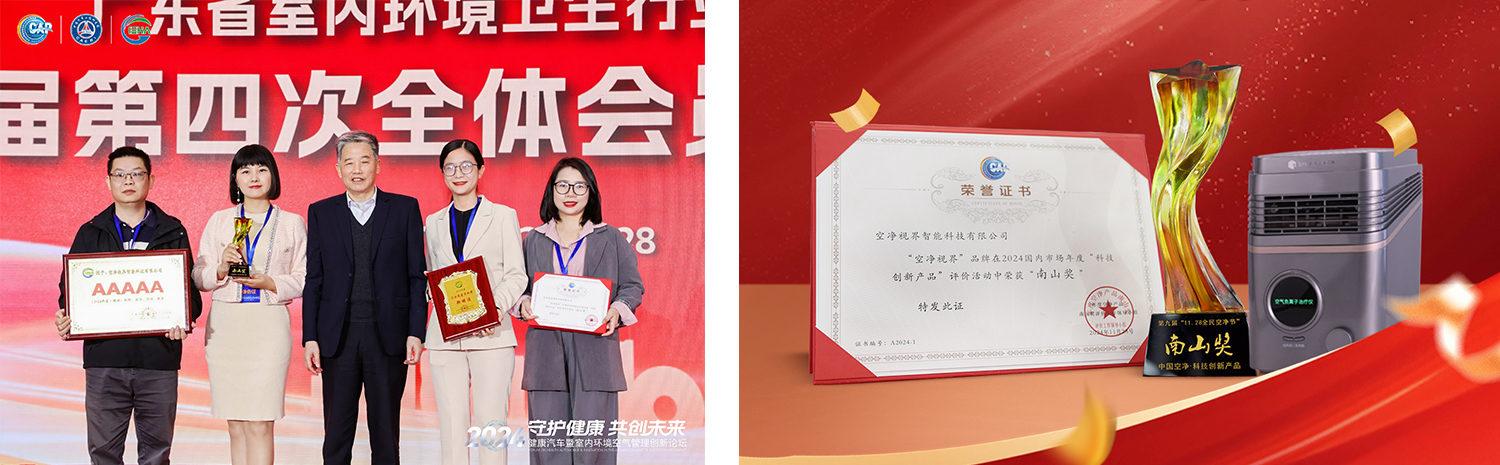 盛會之上,空凈視界以科技創(chuàng)新及深厚的行業(yè)底蘊(yùn),不斷深耕空凈領(lǐng)域,其自主研發(fā)的負(fù)離子治療儀斬獲本屆“南山獎”,同時榮獲2024年度“誠信、品牌、質(zhì)量、管理、服務(wù)”AAAAA企業(yè)、“行業(yè)突出貢獻(xiàn)獎”兩大獎項,彰顯了其在多維度上的卓越表現(xiàn)! 這不僅是對空凈視界在空氣健康領(lǐng)域深耕細(xì)作的肯定,更是對其積極承擔(dān)社會責(zé)任、致力于提升國民健康水平的廣泛贊譽(yù)。